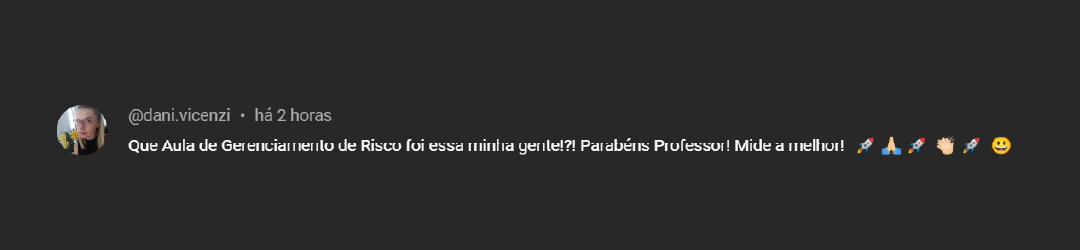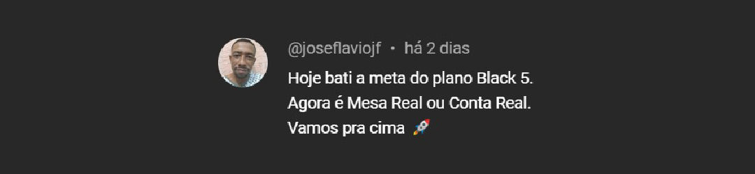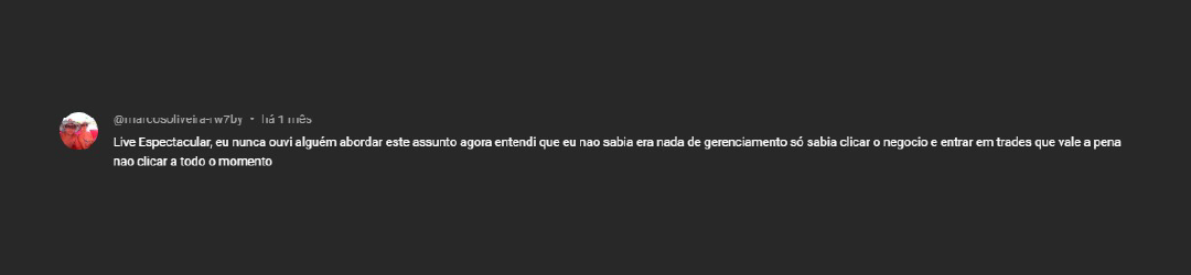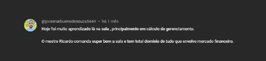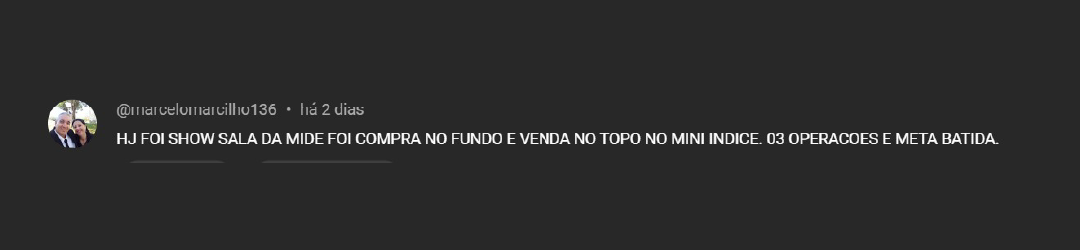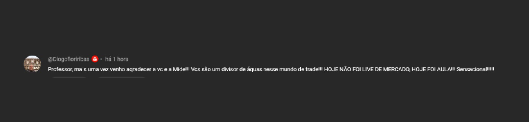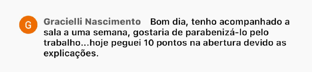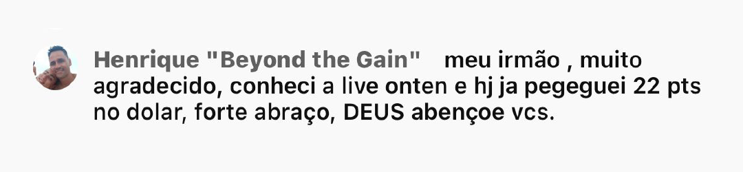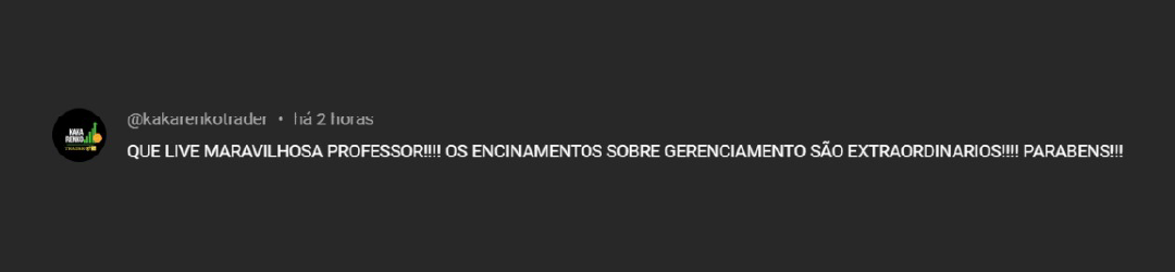 Trader profissional com 8 anos de experiência no mercado financeiro, focado em transformar a complexidade da Bolsa em consistência profissional Apresentador de TV ao vivo e gratuita, com aulas diárias que já impactaram mais de 5 mil traders Operacional aplicado em tempo real nos principais mercados: Mini Índice, Mini Dólar, NASDAQ, Bitcoin e Ouro Especialista em leitura institucional do preço, com domínio de estrutura de mercado, zonas de liquidez, consolidação e tendência Trader atuante em mesas proprietárias nacionais e internacionais, trazendo vivência real de mercado para a formação de traders profissionais Criador do curso “Rumo ao Sucesso”, com foco em leitura clara de gráfico, gestão de risco rigorosa e adaptação a qualquer cenário de mercado